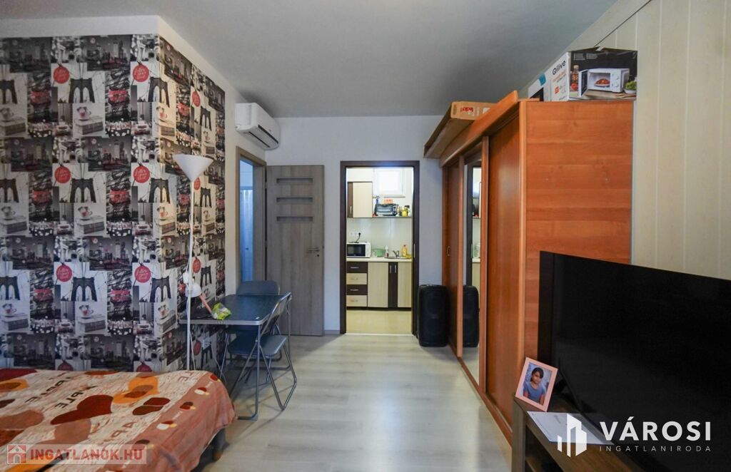 C., A harmadik lakás egy 27nm-es minigarzon, szoba, konyha, zuhanyzós fürdő mosdóval.