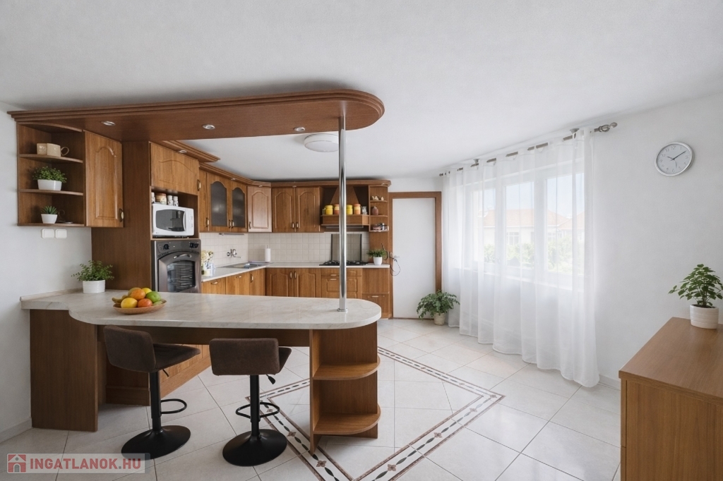 21 m²-es konyha-étkező, amely ideális a családi étkezésekhez