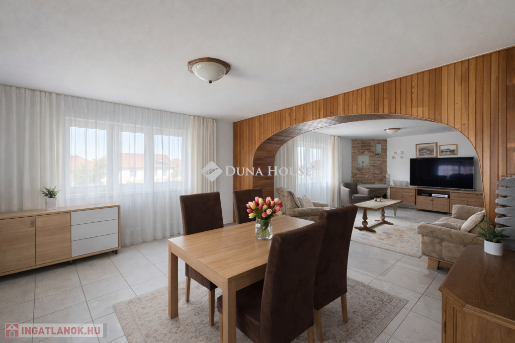 Tágas családi ház mini garzon lakással eladó Pogányban Pécstől mindössze 6 km-rePécstől mindössze 6 km-re, Pogány csendes és nyugodt részén eladóvá vált egy belső kétszintes, rendkívül tágas családi ház, amely ideális választás nagycsaládosoknak, több generáció számára vagy akár vállalkozási célra is.Az ingatlan egyik különlegessége, hogy a főépület mellett egy különálló mini garzon lakás is tartozik hozzá, amely lakásként, irodaként, üzlethelyiségként vagy vendéglakásként is könnyedén hasznosítható.A ház elrendezéseEmeleti lakótér4 különálló, kifejezetten tágas hálószobafürdőszobaminden szobához saját erkély vanA szobák mérete az ingatlan egyik legnagyobb előnye: nagyon tágas, kényelmes életteret biztosítanak a család minden tagja számára.Földszinti lakótér21 m²-es konyhaétkező35 m²-es világos nappali, amely tökéletes helyszíne a családi együttléteknekMűszaki jellemzőkAz ingatlan az elmúlt években több korszerűsítésen is átesett:3 éve cserélt nyílászárók, redőnnyel felszerelveSzigetelt épület, szigetelt tető illetve bramac tető van az épületen3 éves kondenzációs gázkazánnapelem rendszer, amely az ingatlan teljes áramfogyasztását fedeziEnnek köszönhetően a ház fenntartási költsége rendkívül kedvező.Telek és melléképületekAz ingatlanhoz több praktikus kiegészítő is tartozik:garázsfedett kocsibeállónyári konyhagazdálkodásra alkalmas melléképületekÍgy az ingatlan gazdálkodásra vagy állattartásra is kiváló lehetőséget biztosít.ElhelyezkedésPogány Pécstől néhány perc autóútra található, mégis nyugodt, családias környezetet kínál.