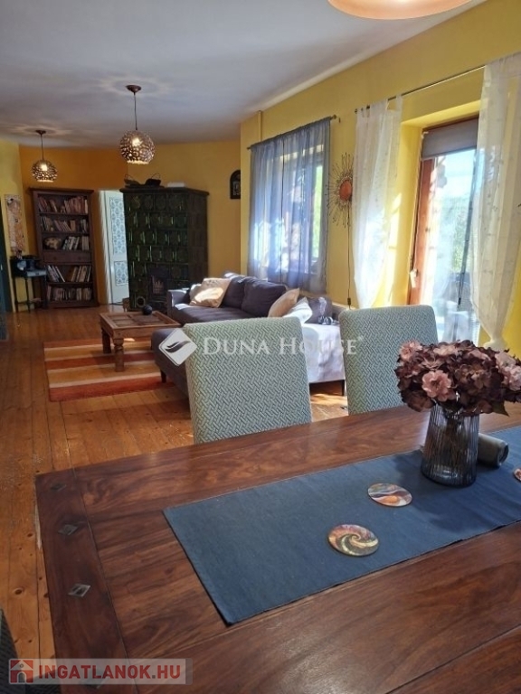 Pogányban tágas családi ház eladó festői környezetben, hangulatos kerttel Pécstől mindössze 6 km-re!Pogány összetartó közösségében, egy hangulatos horgásztó közelében eladó egy 1999-ben épült, 2018-ban korszerűsített családi ház. Az ingatlan nettó 119 m² lakóterű, elosztása ideális családok számára: *a földszinten tágas amerikai konyhás nappali, szülői hálószoba saját fürdővel, mosókonyha, valamint kertkapcsolatos, hangulatos terasz található. *az emeleten 2 kisebb (akár összenyitható) és 2 kényelmes méretű szoba kilátással a dimbes-dombos vidékre, fürdőszoba és gardrób került kialakításra. Kondenzációs gázkazán és cserépkályha, míg a kisházban a gázfűtés mellett vaskályha szolgáltatja a meleget. A házhoz tartozik egy boltíves borospince, valamint egy külön, kb. 50 m²-es épületrész, amely önálló lakrészként, műhelyként vagy hobbiszobaként is hasznosítható. Rengeteg kisebb nagyobb tarolásra alkalmas praktikus tér található a családi otthonban. A tágas, vadregényes kertben gyümölcsfák, árnyat adó diófák, tűzrakóhely, medencének való hely került kialakításra, valamint utcafrontján fedett dupla gépkocsibeálló is megtalálható. A telek kellő távolságot biztosít a szomszédoktól, miközben igazi nyugodt, intim életteret kínál. Az ingatlan kiváló választás lehet kétgenerációs együttéléshez, családosoknak vagy azoknak, akik a természet közelségét és a nyugalmat keresik, de nem szeretnének lemondani a város közelségéről. Hangulatos otthon, vadregényes kerttel, mindössze pár percre Pécstől!