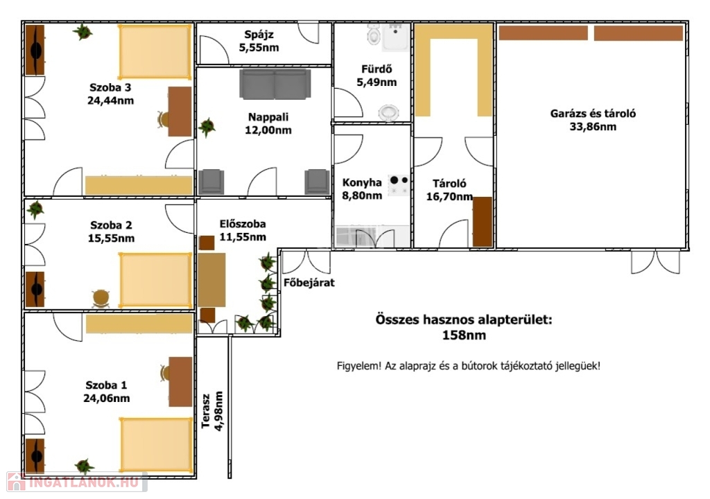 Az épület hasznos alapterülete 158nm melyben található: