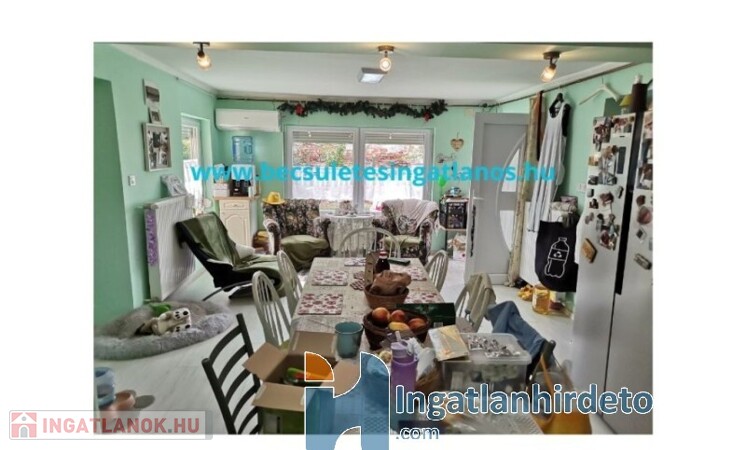 Elhelyezkedése: Belterület Állapota: Használt - felújított Komfort besorolása: Komfortos Építési éve: 1940 Alapterülete: 80 m2 Telekterülete: 2 370 m2 Szobák száma: 2 + 1 szoba Felújított: Felújított Felújítás éve: 2021 Felújítás során elvégzett munkák: Festés, Villanyrendszer csere, Vízrendszer csere, Fűtésrendszer csere, Csempe csere, Járólap csere, Parketta csere, Fűrdőszobai szaniterek cseréje, Belső átépítés, Nyílászárók cseréje, Hőszigetelt nyílászárók beépítése, Redőnycsere Közművek: Gáz, Víz, Villany, Csatorna Gázellátás: Vezetékes Vízellátás: Vezetékes víz Melegvíz-ellátás: Gázkazán Áramellátás: 230V Fűtés módja: Gáz Fűtés típusa: Cirkó, Központi gázkazánnal Homlokzat állapot: Esztétikailag felújított Építési mód: Vályog, Vegyes falazat, Egyéb Tető formája: Magas Tető anyaga: Cserép Parkolási lehetőség: Telken Kilátás: Egyéb panorámás Jellemzői: Alacsony rezsi, Csendes környék, Jó közlekedés Energetikai besorolás: Nincs adat Egyéb jellemzők: Terasz Közelben: Óvoda, Helyi autóbuszállomás, Orvosi rendelő, Bolt, Postahivatal, Vendéglátó egység, Autópálya Terhelések: Tehermentes ingatlan
