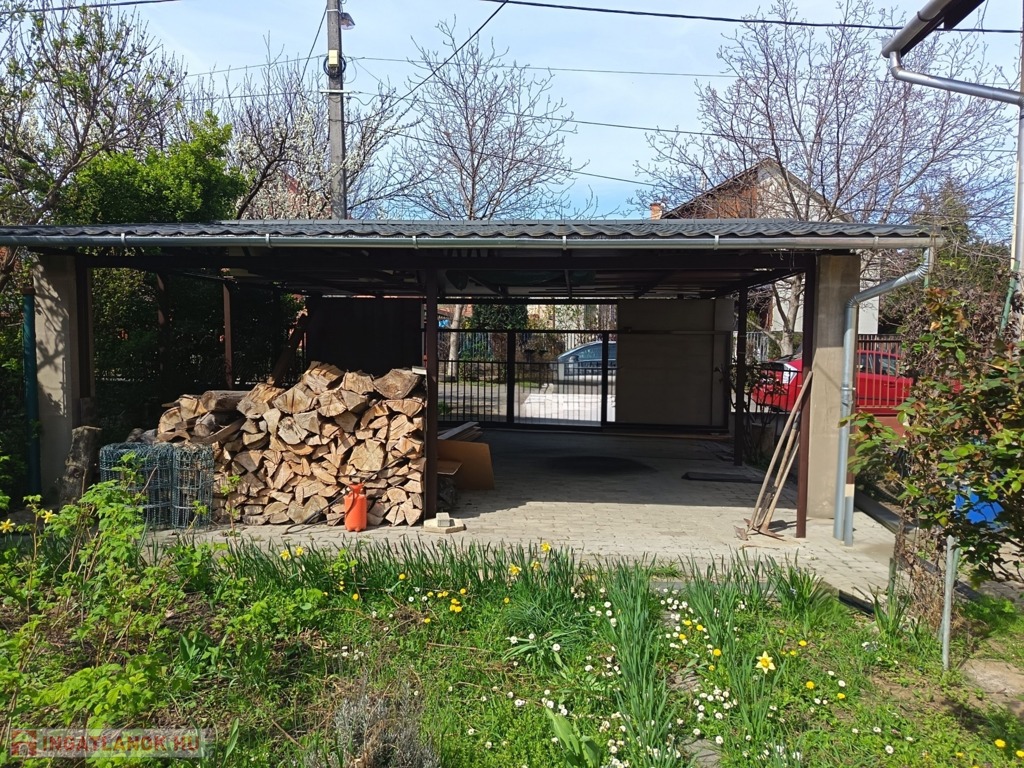 Az ingatlanhoz tartozik egy két autó számára elegendő, fedett gépkocsibeálló, valamint egy tágas, körülbelül 35 nm-es pince is.