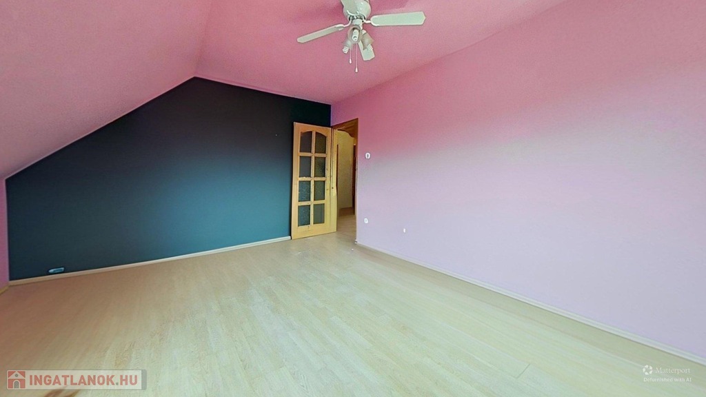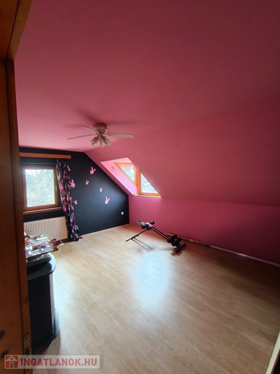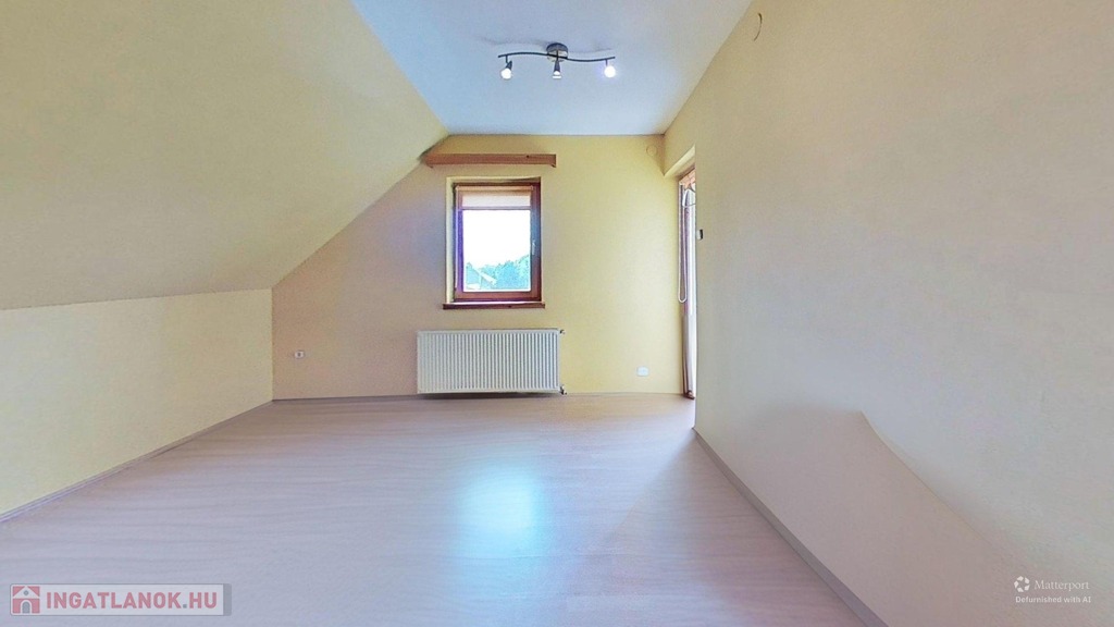 Az emeleten három külön nyíló hálószoba, egy erkély, egy kádas fürdőszoba és egy külön WC található.