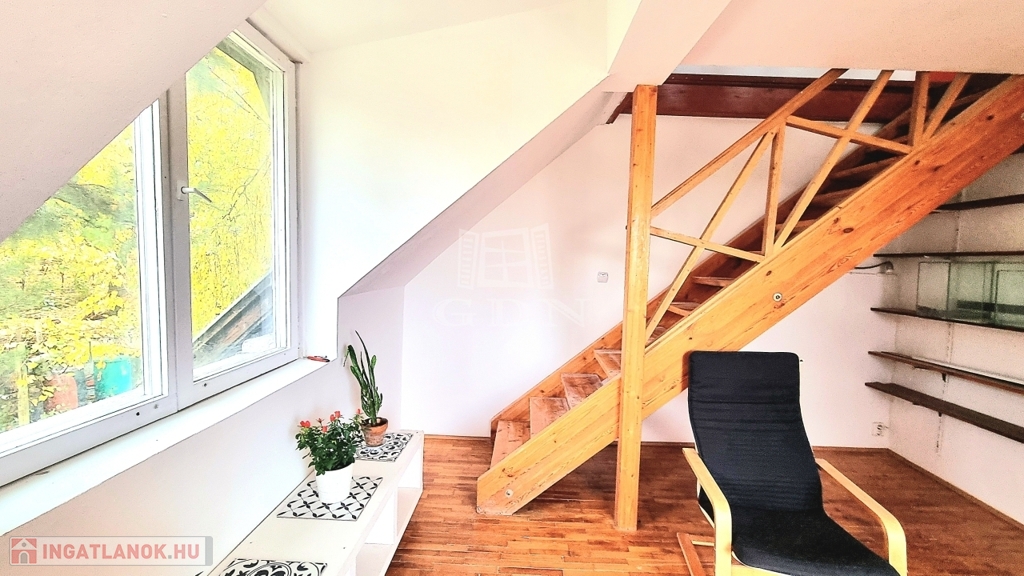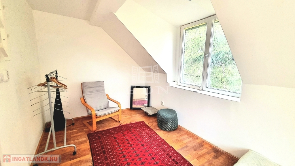 A legfelső szinten egy hangulatos kicsi hálószoba helyezkedik el.
