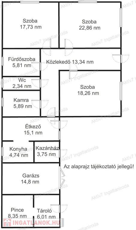 -3 szoba, közlekedő, konyha, étkező, fürdőszoba,kamra, külön nyíló wc, kazánház, pince, és tároló helyiségekkel,