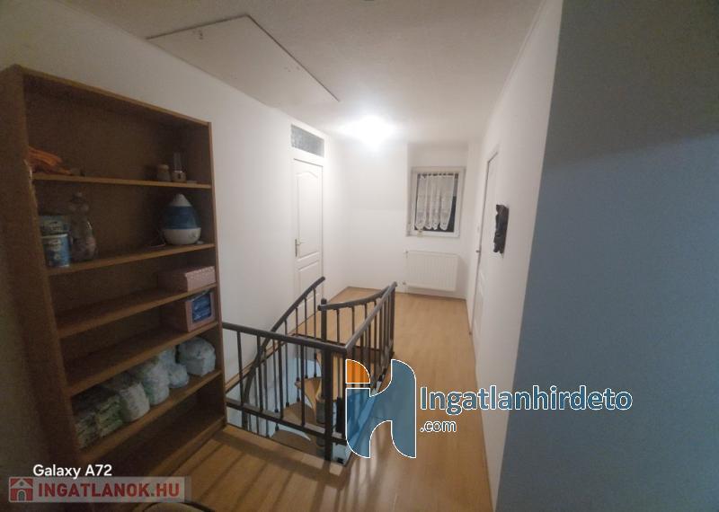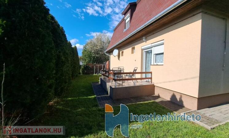 Elhelyezkedése: Belterület Tájolása: észak-nyugati tájolású Állapota: Kiváló Komfort besorolása: összkomfortos Építési éve: 2008 Alapterülete: 98 m2 Telekterülete: 450 m2 Szobák száma: 2szoba Közművek: Gáz, Víz, Villany, Csatorna Gázellátás: Vezetékes Vízellátás: Vezetékes víz Melegvíz-ellátás: Gázkazán Áramellátás: 230V Fűtés módja: Gáz Fűtés típusa: Cirkó Homlokzat állapot: új Építési mód: Tégla Tető formája: Magas Tető anyaga: Cserép Parkolási lehetőség: Garázsban, Utcán Kilátás: Udvari kilátás Napelem: Nincs Jellemzői: Alacsony rezsi, Csendes környék, Jó közlekedés, Két bejárat, Redőny, Fűtött garázs, Étkező, Udvari terasz, Amerikai konyha, Beépített szekrény, Beépített konyhabútor, Autóbeálló, Kert, Kerítés, Térkő, Zöldterület, Jó közbiztonság Energetikai besorolás: Nincs adat Egyéb jellemzők: Terasz Tv, Internet: Kábeltévé, Internet, Vezetékes telefon Közelben: Iskola, Óvoda, Vasútállomás, Autóbuszállomás, Helyi autóbuszállomás, Orvosi rendelő, Bolt, Gyógyszertár, Postahivatal, Vendéglátó egység, Autópálya Rezsi költség(Ft): 30000 Terhelések: Tehermentes ingatlan Eladásra vonatkozó információk: Azonnal beköltözhető