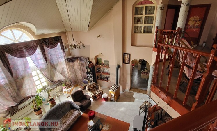 Pusztaszer központjában eladó 1990-ben épült, 2 szintes 225m2-es, 6 szobás, különleges elrendezésű tágas, világos családi ház. A lakóházhoz kapcsolódik egy 1992-es építésű 219m2-es épület, mely méretének és kialakításának köszönhetően többféle tevékenységre alkalmassá tehető. Mindkét épület kitűnő szerkezeti állapotban van, egyedi elképzelések alapján, a 90-es évek legkorszerűbb építőanyagaiból készült.
