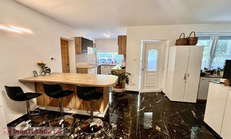 A ház éke a konyha,mely modern, igényesen kivitelezett. Beépített mosogatógép, sütő, főzőlap és szagelszívó lett a konyhabútorba beépítve. A háziasszonyok kedvence a konyhában található ablak, mely előtt nagy pult és a gránitmosogató is van.