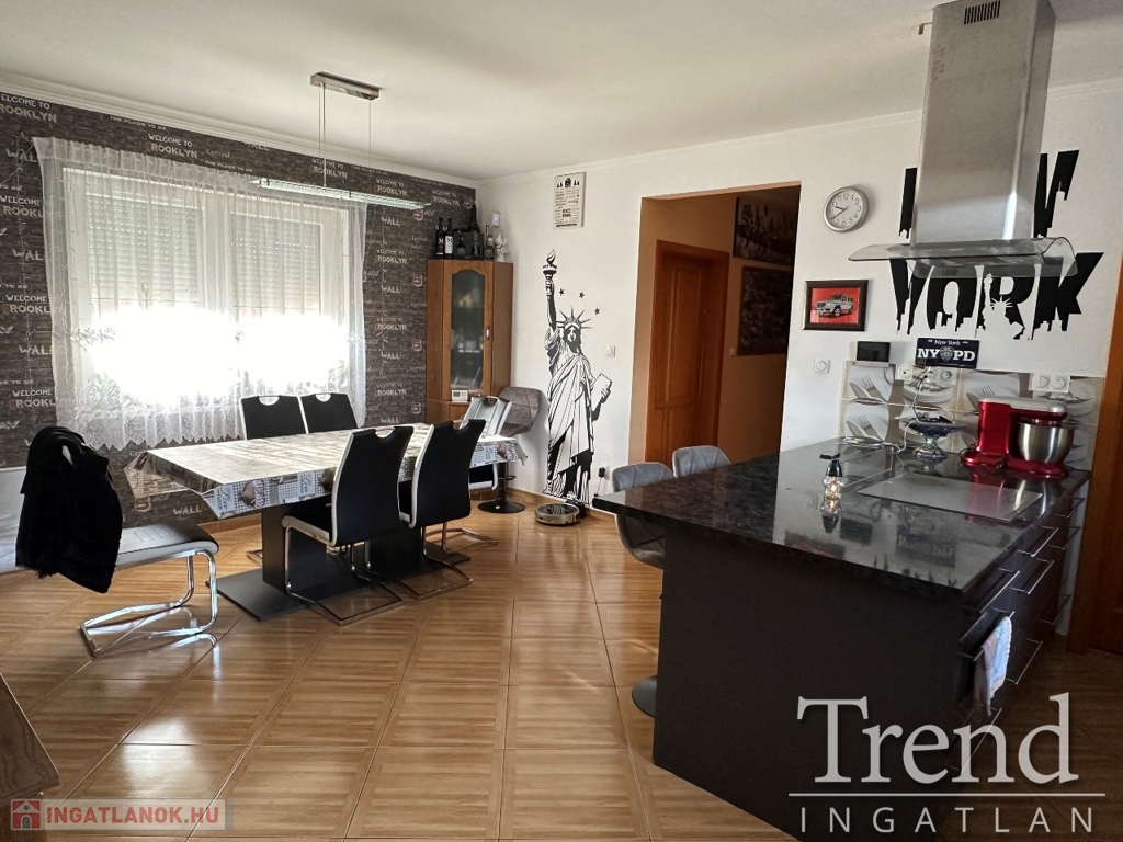 Az ingatlan nagy nappalival rendelkezik, ahol a természetes fény árad be az ablakokon, teremtve egy kellemes és meleg atmoszférát. A házban három hálószoba található, így elegendő hely áll rendelkezésre a család minden tagjának. A modern gépesített konyha és étkező együttese ideális teret teremt az étkezésekhez és közös időtöltéshez.
