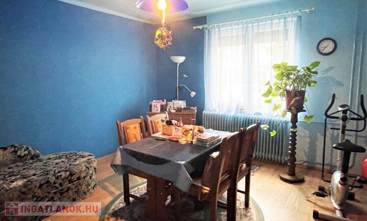 A családi ház a 70-es években salakblokk téglából épült, belső falszerkezete tégla, így jól alakítható, ha jelenlegi elosztása nem lenne megfelelő. Az ingatlan jó állapotú, tetőszerkezete betoncserép fedésű, 2010-ben újralécezték és fóliázták. Külső hőszigetelése és a nyílászárók cseréje szintén 2010-ben történt. Fűtése gázcirkóval, a hő leadása tagos radiátorokkal történik. A meleg víz ellátást villanybojler biztosítja. Jelenlegi belső elosztása ideális, két nagy szoba mellett kisebb félszoba, tágas konyha, egy légtérben található fürdő, wc és kamra kapott helyet. A kert gondozott, szépen parkosított, a ház végében kis tároló szolgál a kerti eszközök elhelyezésére.