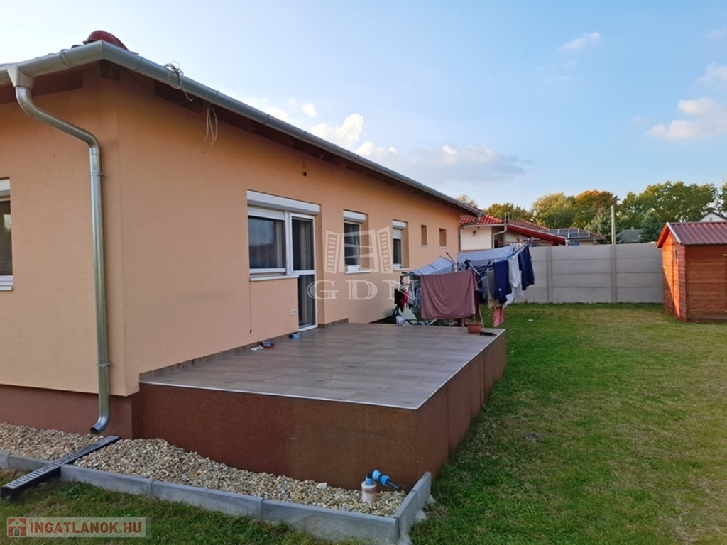 A nettó 104 m2-es családi ház 2018-ban épült, egy 700 m2-es összközműves telken, beton alapra, tégla falazattal, fa födémmel, cserépfedésű tetővel.