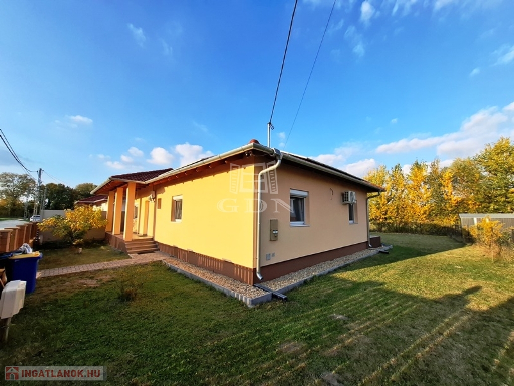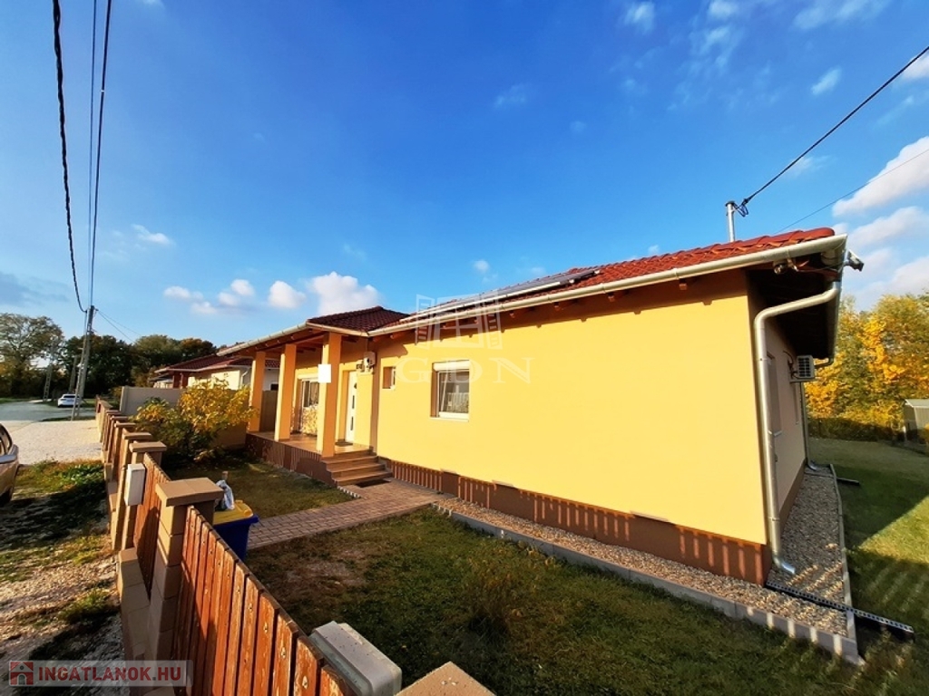 A nettó 104 m2-es családi ház 2018-ban épült, egy 700 m2-es összközműves telken, beton alapra, tégla falazattal, fa födémmel, cserépfedésű tetővel.