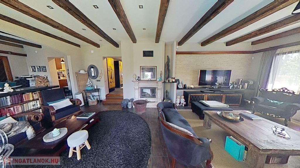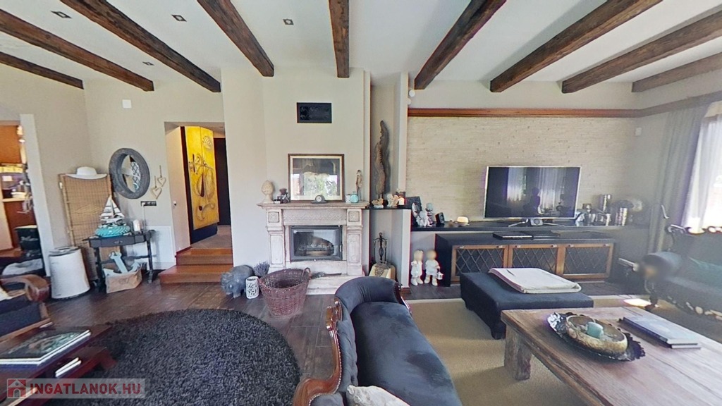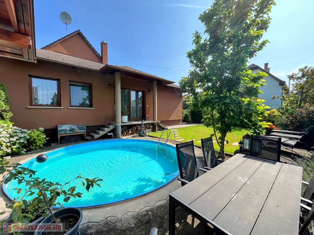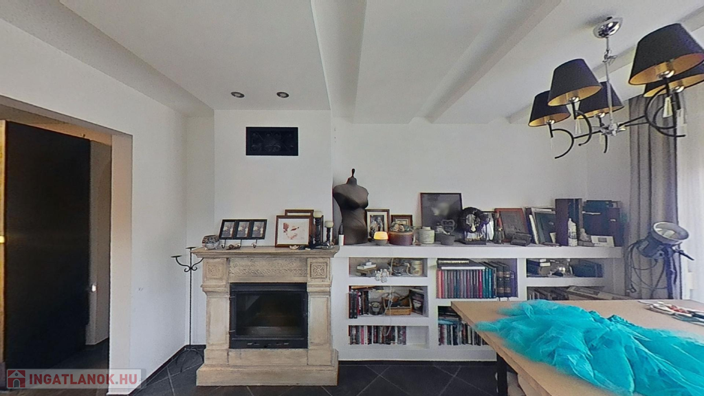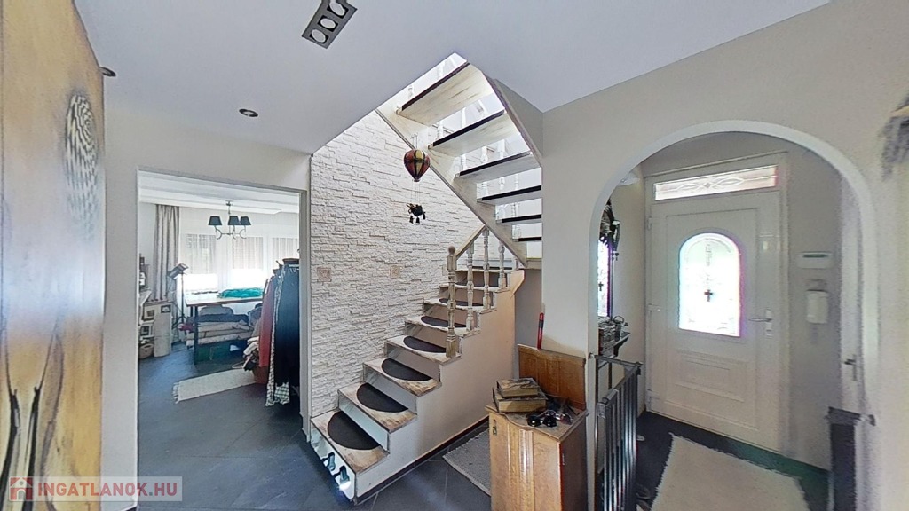 A földszinten egy gyönyörű, 70 nm-es nappali/étkező lehet a családi élet központja, mely hatalmas ablakokkal és a medence/kert felé nyíló nagy teraszajtóval bír, így a nap minden időszakában világos. Az étkező egy légtér a nappalival, de bútorral, valamint egy egy lépcsőnyi szinttel mégis jól elkülönül attól. A földszinten van még két nagy méretű háló (melyből egyik jelenleg a home office, itt szintén működő kandallót találunk), egy fürdő/wc, valamint egy külön wc.
