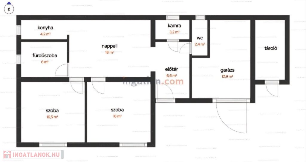 Autó beállási lehetőség a telken belül található garázsban van (12,9 m2), de igény esetén ebből még egy szoba kialakítható.