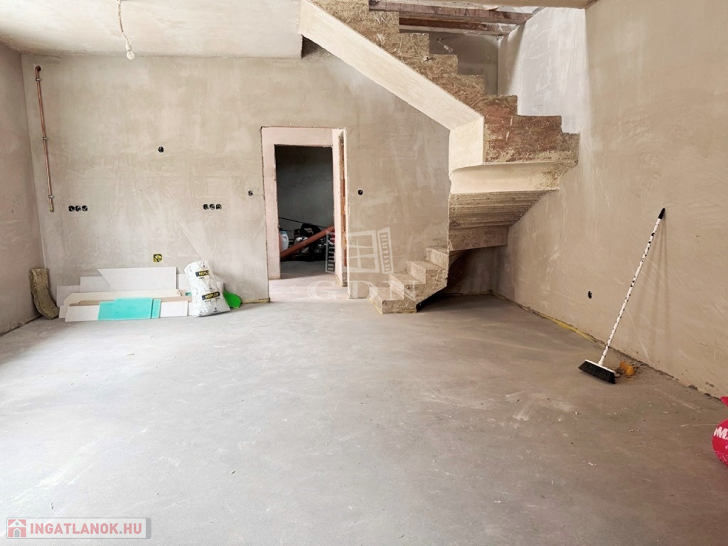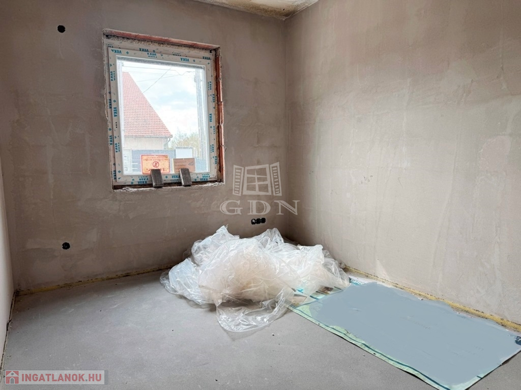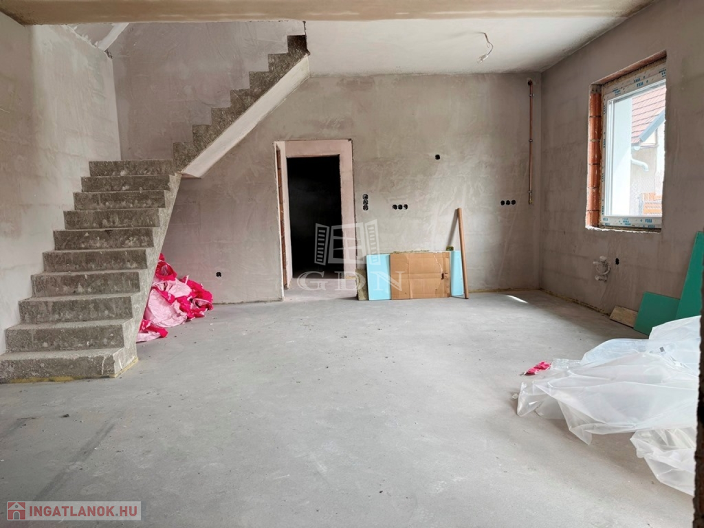 A lakás 90% készültségi állapotban van. 102 nm nettó alapterületű 2 szintes, +19 nm fűtött garázzsal. Összesen 121m2. 3 szoba amerikai konyha, nappali, fedett terasz, dupla komfort, gardrób. 33% helyben előállított villamosenergia, amiről napelemek gondoskodnak. A locsoláshoz fúrt kút biztosítja a vizet. Klíma kiállások előkészítve. Riasztórendszer kiépítve. Az konyhabútor elkészítéséhez szakembert tudunk biztosítani!