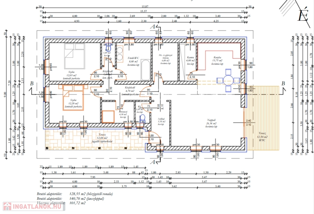 2,- nappali + 3 hálószobás kialakítás nettó 110 nm - 88.000.000.-Ft,
