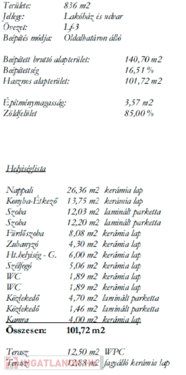 1,- nappali + 2 hálószobás kialakítás nettó 102 nm - 81.600.000.-Ft,
