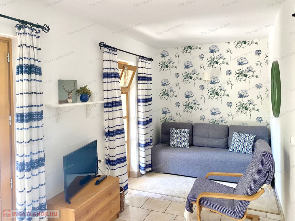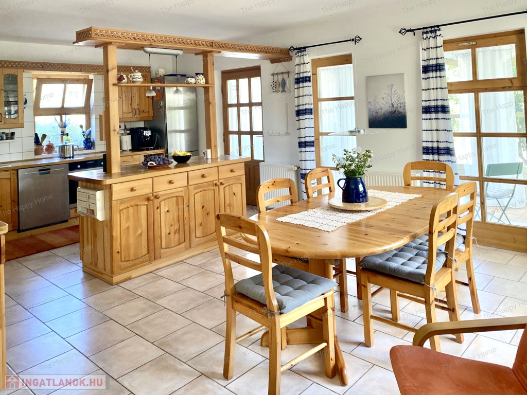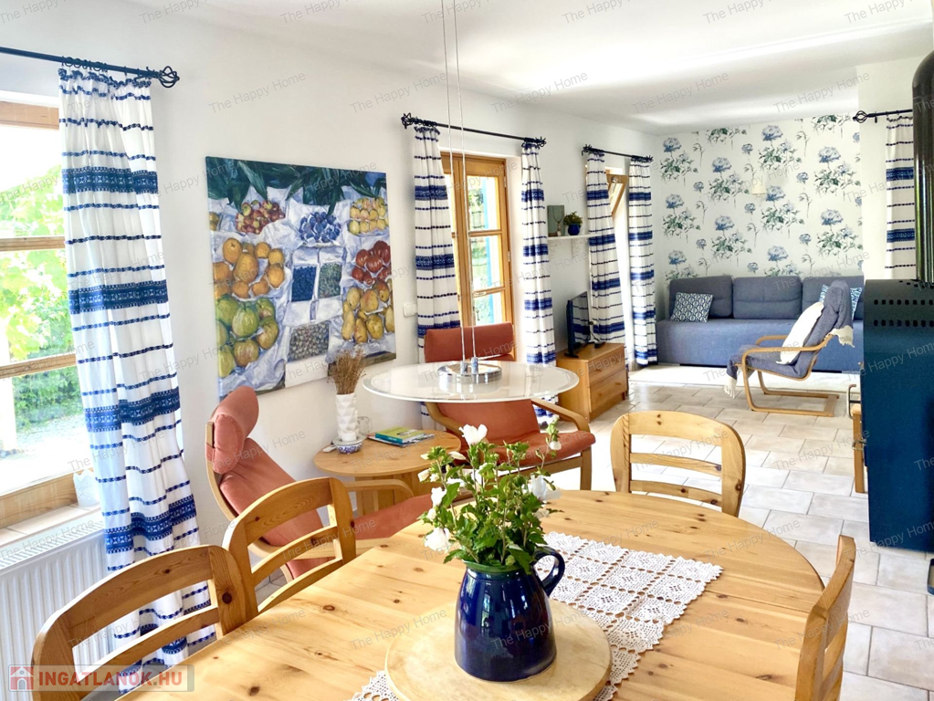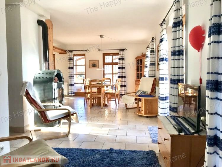 Lakóterek: Tágas és világos nappali-konyha a földszinten, 2 hálószoba, mindkettő külön fürdőszobával a felső szinten – ideális elosztás mindenki számára. A házban minőségi fa nyílászárók és rusztikus fa konyhabútor kínálja az otthonos hangulatot.