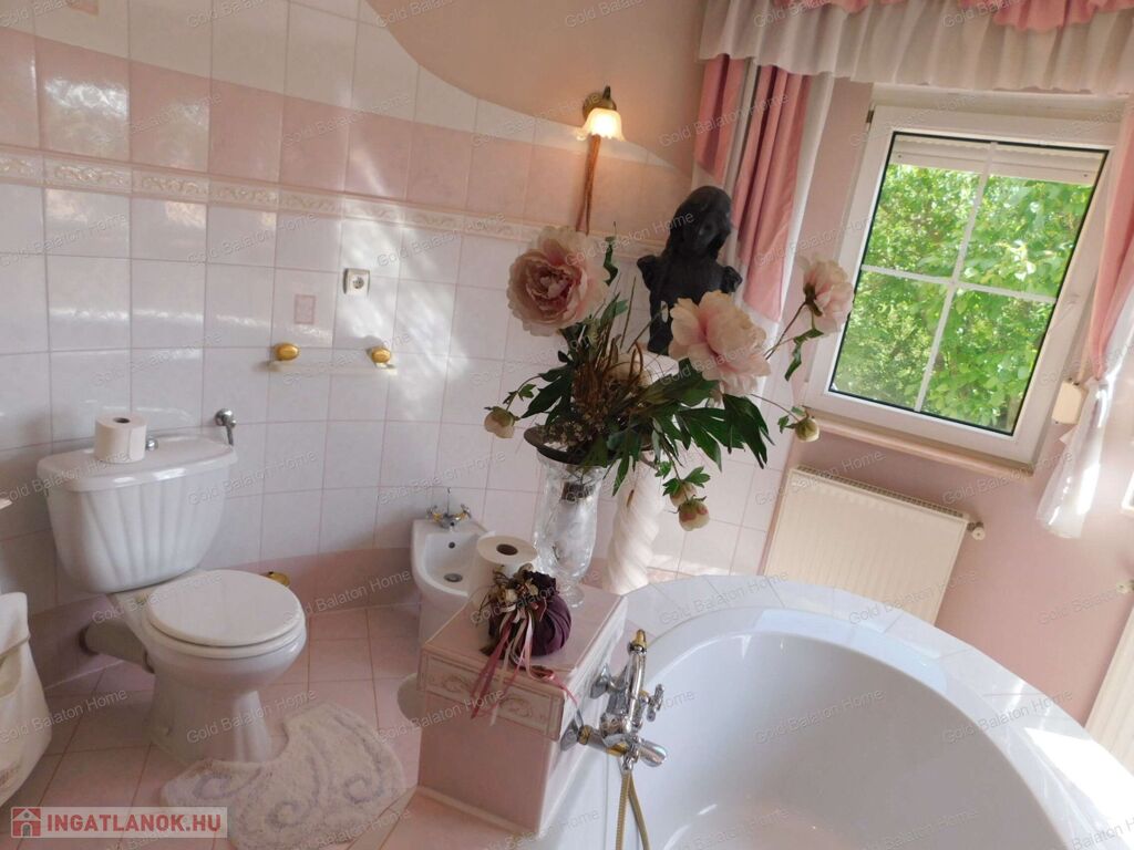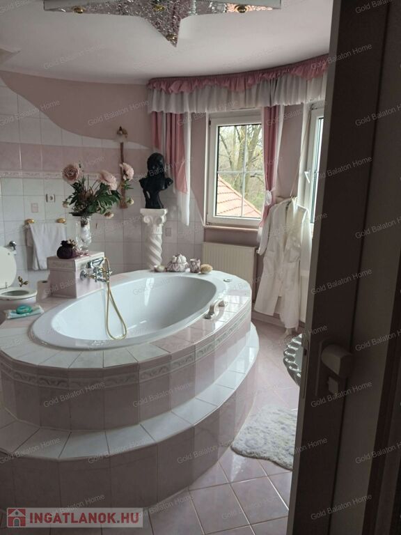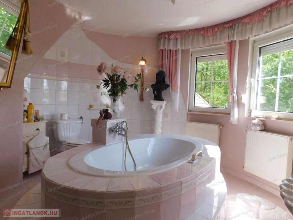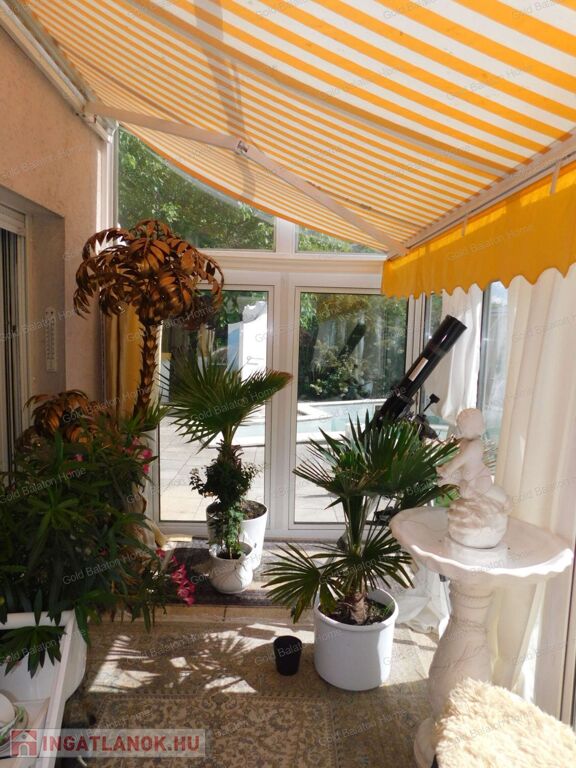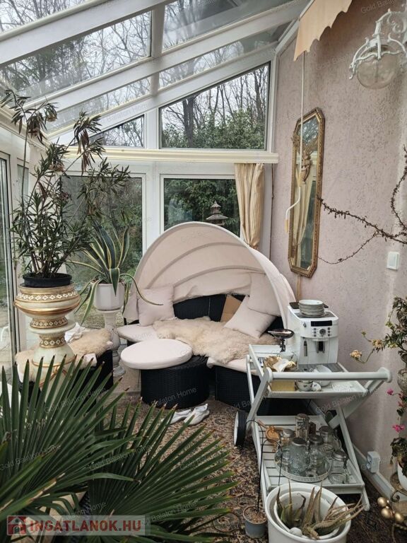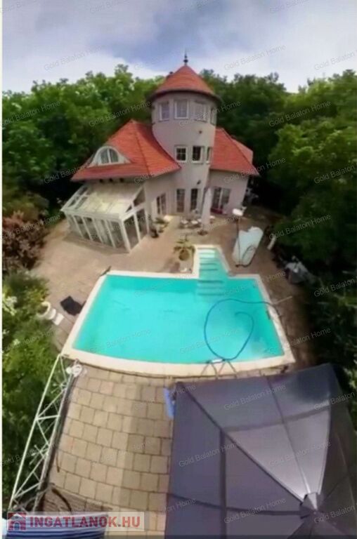 Két hálószobás, nagy nappalis, úszómedencés, napozó és grillező teraszos ház, dupla garázzsal, kondi teremmel és tájra néző panorámával a Hévízi tótól mindössze 5000 méterre, a Balatontól 9000 méterre eladó.