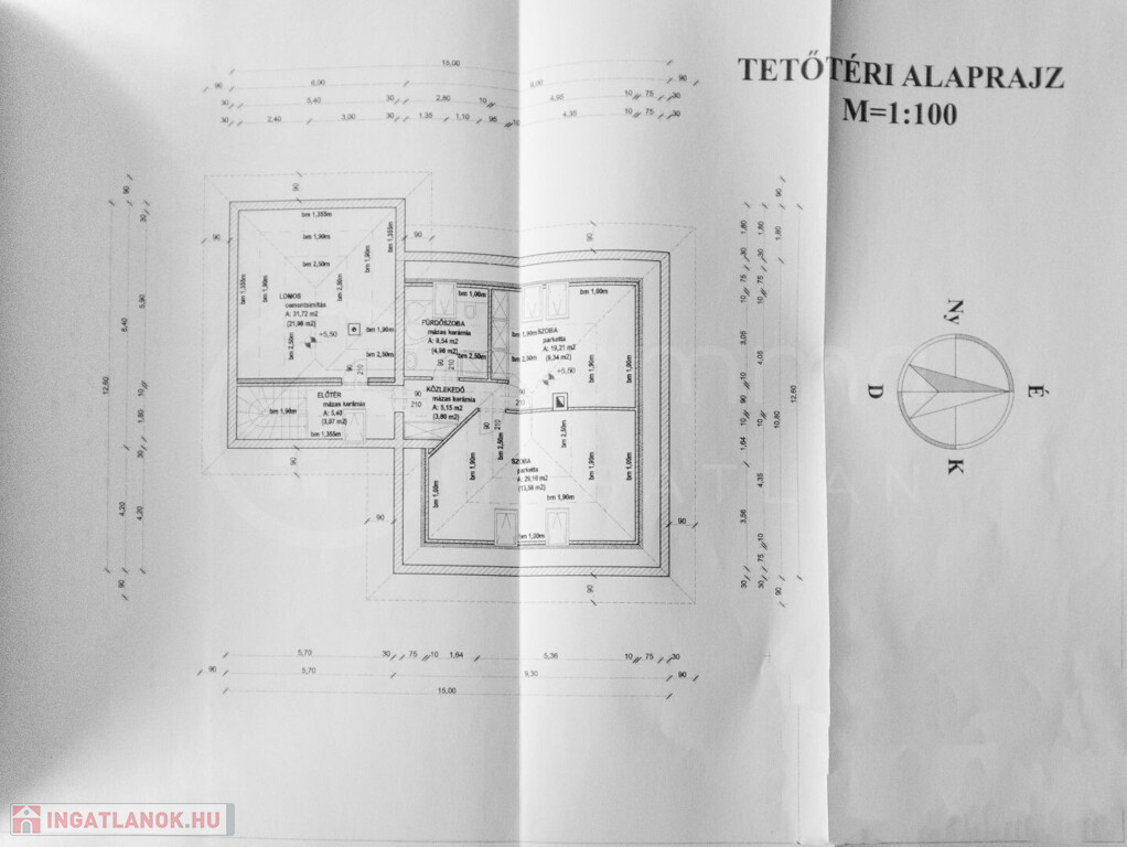 • Tetőtér (bruttó 67 m², nettó 34,75 m²): További 2 szoba, fürdőszoba és közlekedő került kialakításra.