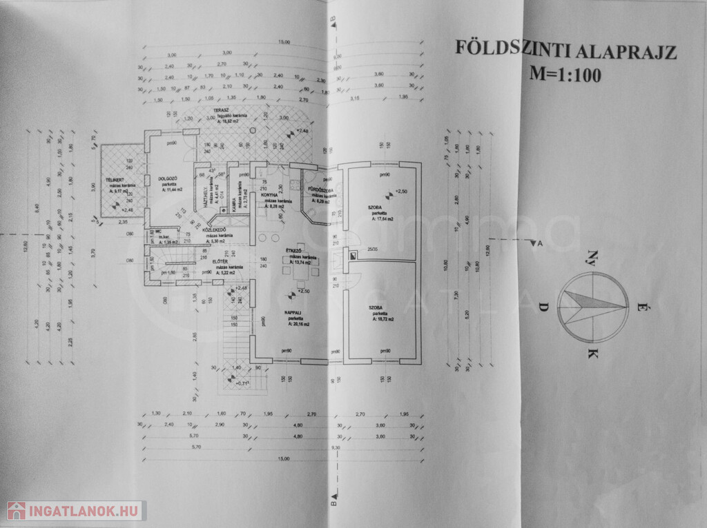 • Földszint (115 m² + 18,8 m² terasz + 9,17 m² télikert): Tágas nappali, 2 nagyméretű szoba, étkező, konyha, fürdő, dolgozószoba, valamint egy hangulatos télikert és terasz.