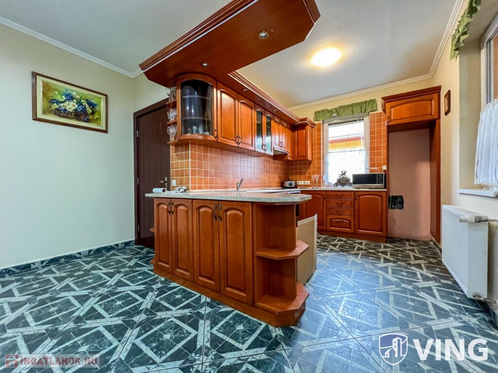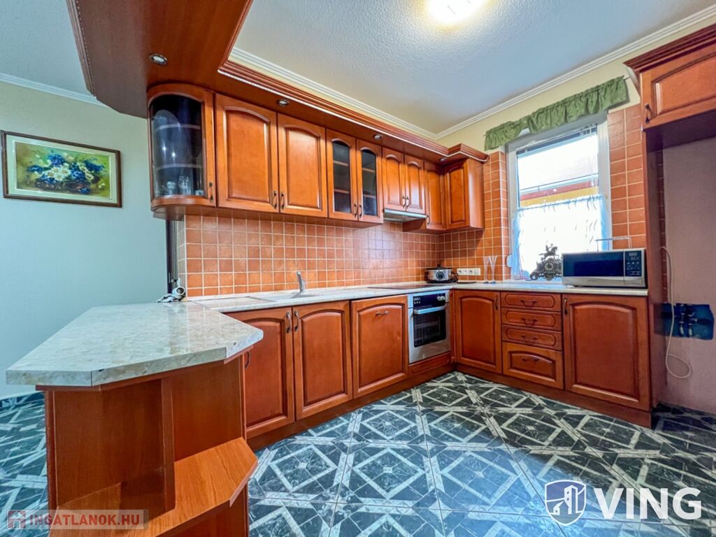 Az ingatlanhoz tartozó telek cca. 300 nm nagyságú, körbekerített, udvari gépkocsi beálló, nyitott terasz, kerti tároló, kemence, fúrt kút, tuják, gyümölcsfák találhatók.