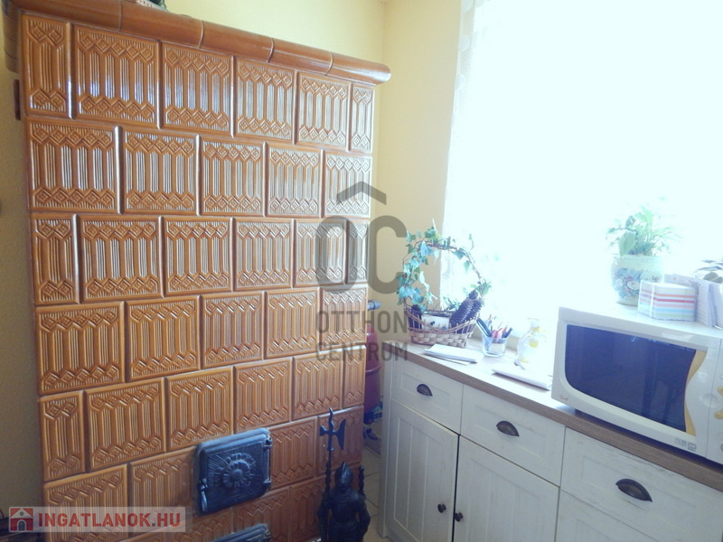 -a meleget vízpatkós cserépkályha, radiátoros hőleadással biztosítja