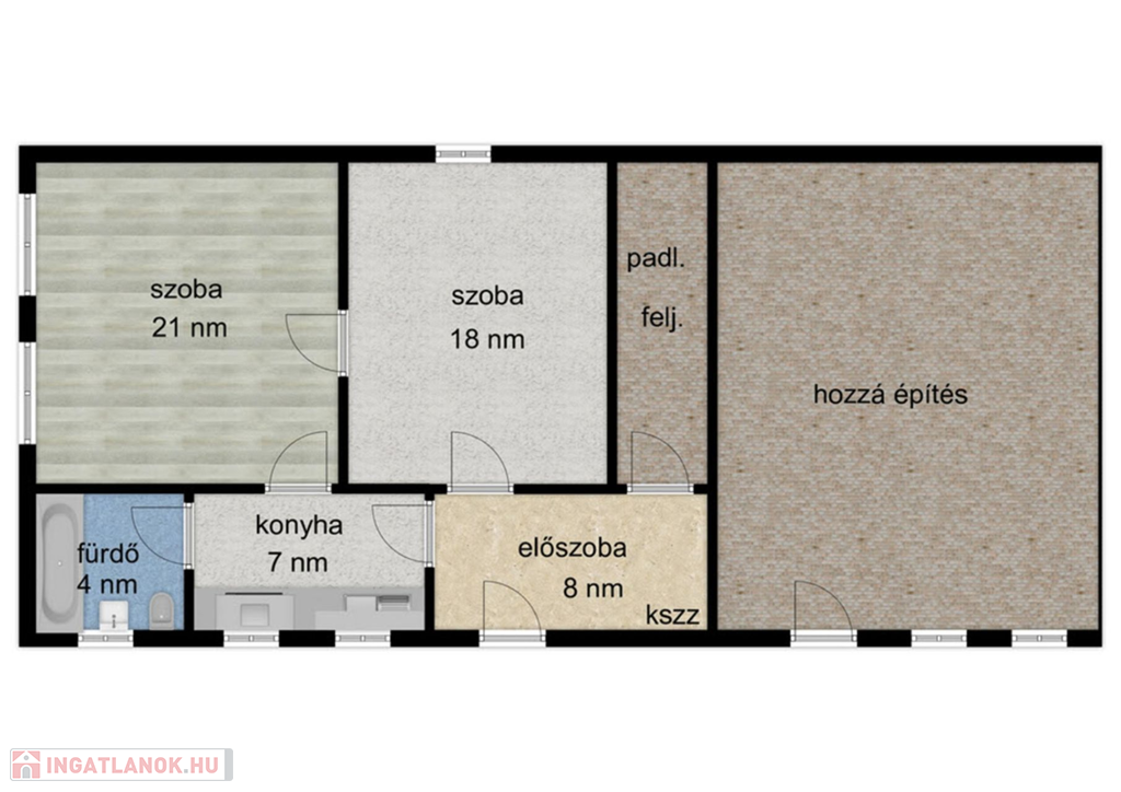 - Vályog épület cirka 60 nm-es hasznos alapterülettel.