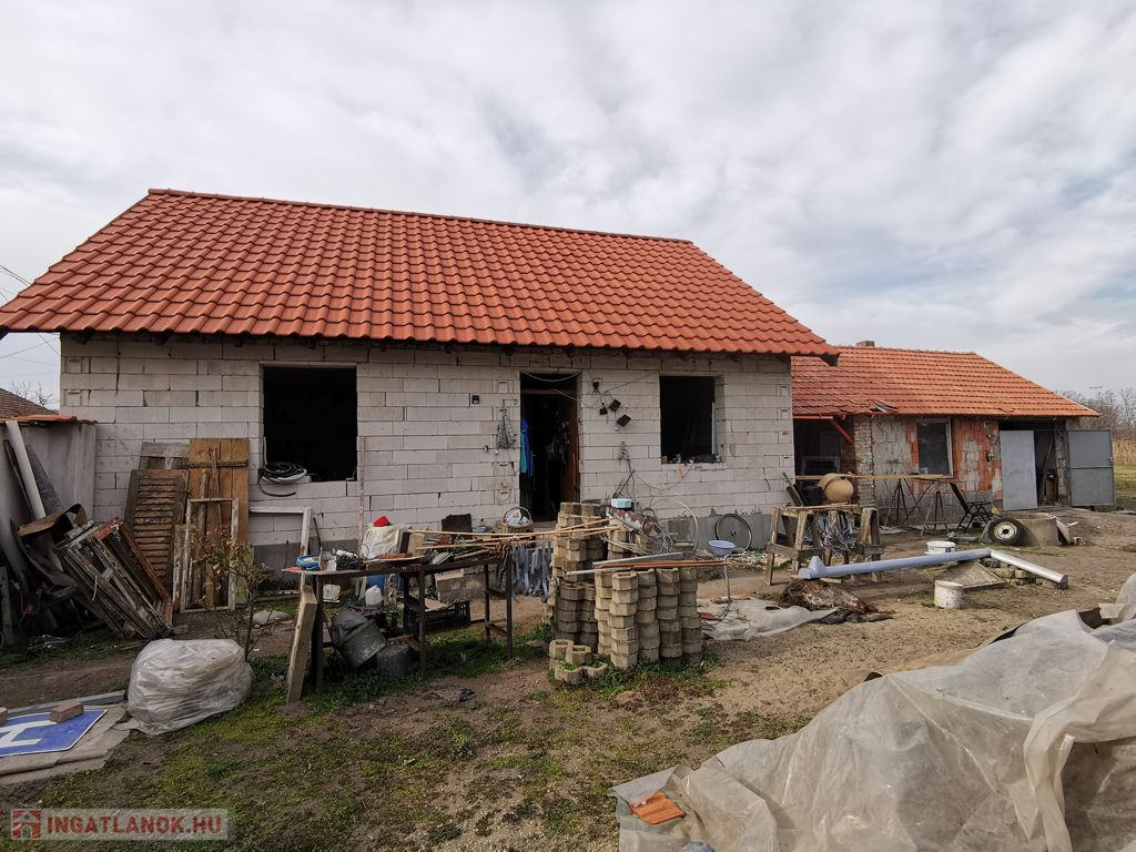 Sándorfalva központja közelében, Ytong téglából épült, egyszintes, nappali+2 szobás, szerkezetkész családi ház 1241nm-es telken eladó.