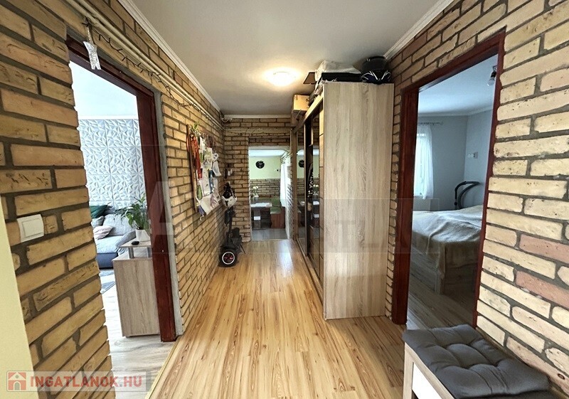 Eladásra kínálunk egy 87,5 m²-es, földszintes, téglaépítésű családi házat, amely 777 m²-es telken helyezkedik el, előkertes kialakítással.