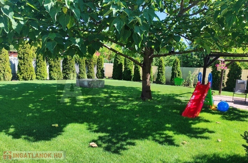 Az épület mögött kb. 300 m²-es füves terület található, ahol a gyerekek szabadon játszhatnak, vagy akár kertészkedésre is alkalmas.