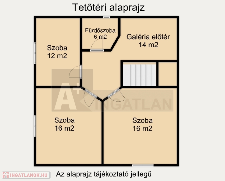 Tetőtér: 3 szoba, fürdőszoba tuskabinnal és wc-vel, galéria