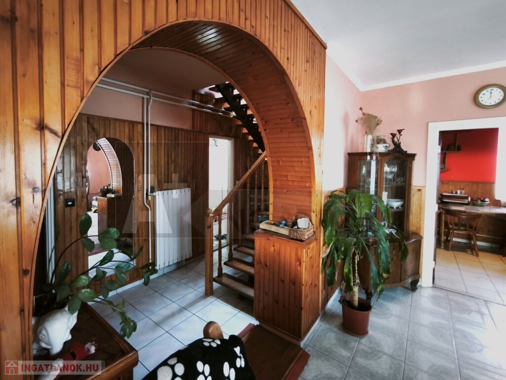 A ház átgondolt belső terekkel rendelkezik, jól karbantartott. A telek gondozott, egy része gyümölcsfákkal beültetett, emellett a továbbiakban lehetőséget biztosíthat két különálló ingatlan létrehozására is.