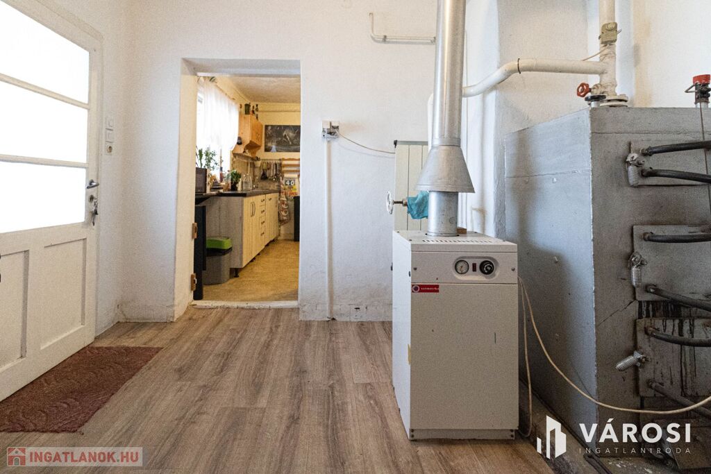 A ház melegét gázcirkó (Termoteka márkájú) és vegyes tüzelésű kazán biztosítja radiátoros hőleadókkal, míg az emeleti szobában elektromos fűtőtest található. A nyári hőségben Beco inverteres klíma gondoskodik a kellemes hőmérsékletről, a használati melegvizet pedig villanybojler szolgáltatja.