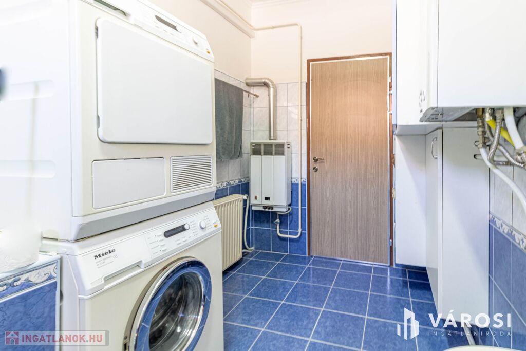 Hasznos alapterülete 138 m², amely a következő helyiségekből áll: 3+2 szoba, folyosó, konyha (felújított konyhabútorral), külön étkező, fürdőszoba WC-vel, kazánház, kamra, tároló.