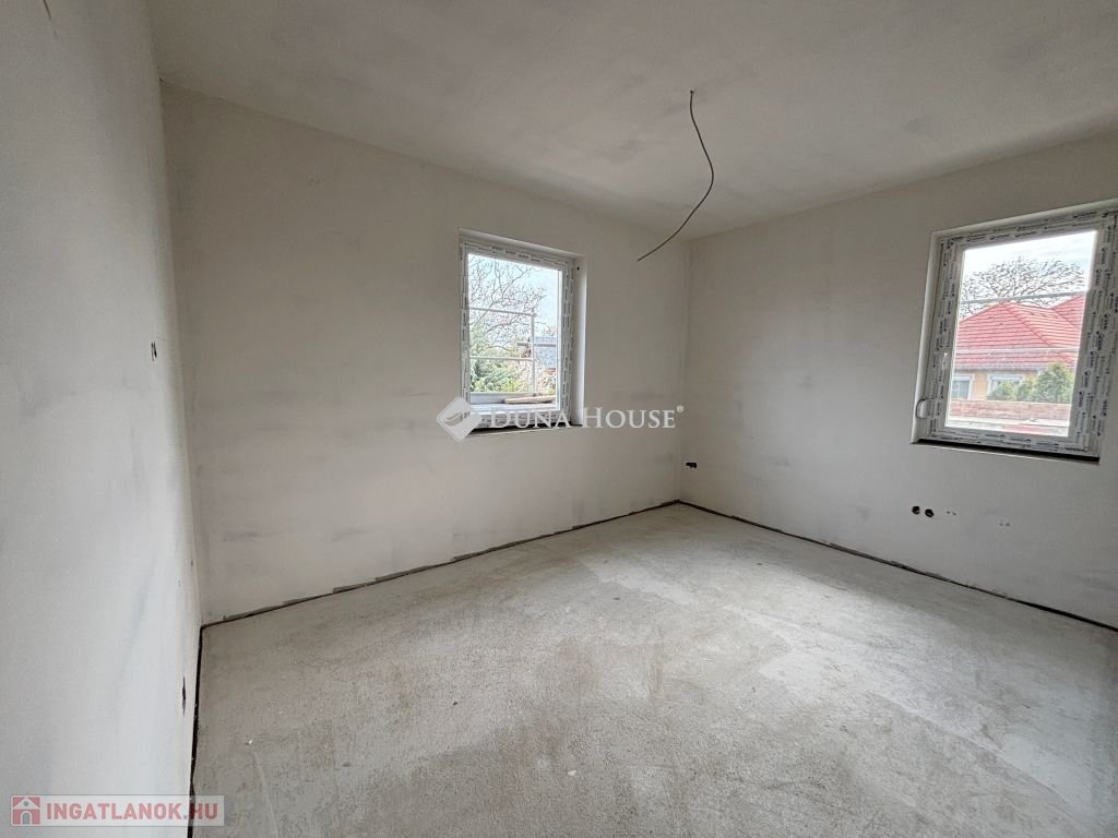 A tervezés során fontos szempont volt a minőség, a költséghatékony fenntartás és az ingatlan értékállósága. Az épület fűtését, illetve meleg víz ellátását a kor igényeinek leginkább megfelelő,egyedi kondenzációs-gázkazán biztosítja, egyedi méréssel és szabályozással, a hőleadás padlófűtéssel történik. Igazi családbarát kialakítás : A földszinten amerikai konyhás nappali, egy hálószoba, fürdő, külön wc és egy háztartási helyiség. Az emeleten három hálószoba, egy nagy fürdőszoba dupla mosdóval, káddal és zuhanyzóval is valamint egy külön wc is van. Nyugis terasz a kertben, valamint akár 2 autónak térkövezett beálló...