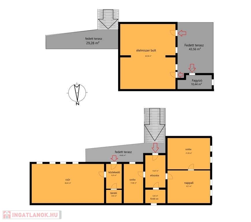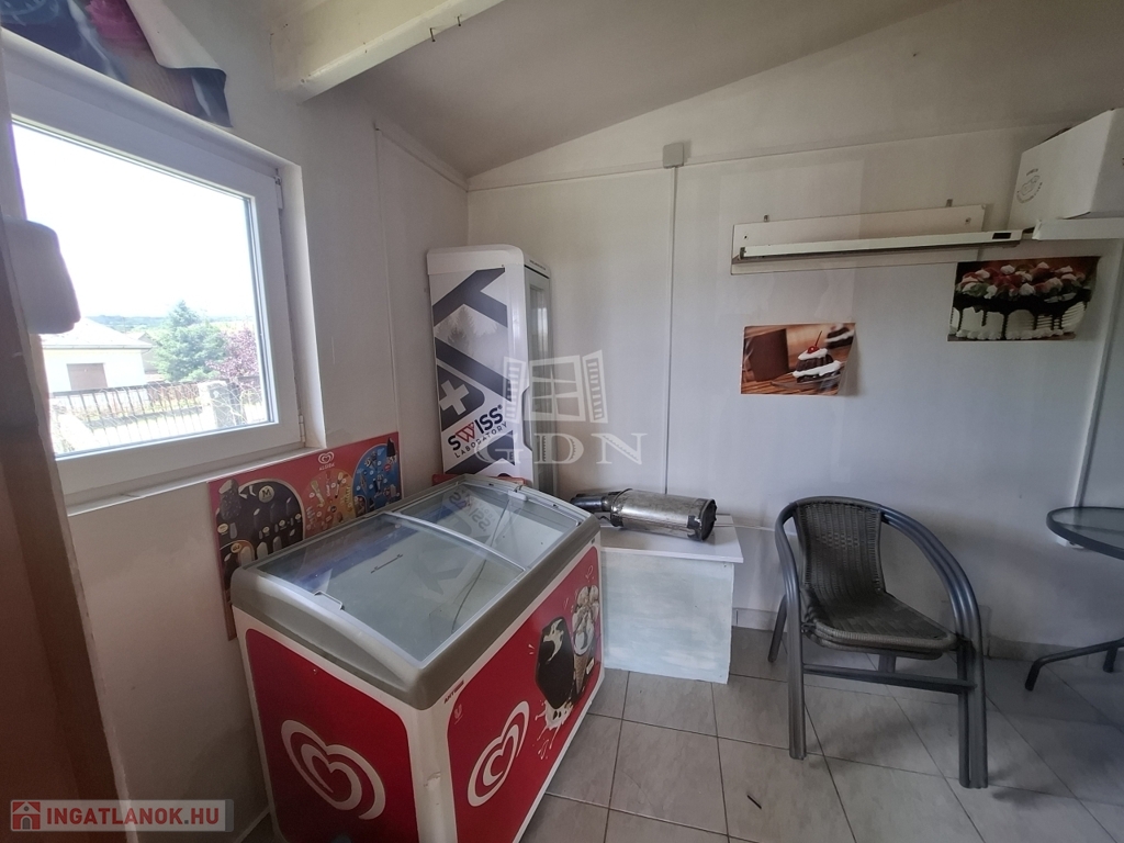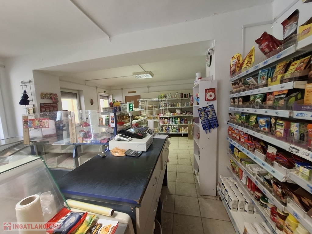 Az alsó szinten bolt (mely jelenlegi is üzemel), fagyizó és egy fedett terasz van. Az ingatlan így vállalkozásra is tökéltetesen megfelelő.