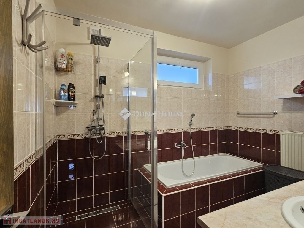Eladásra kínálom Máriagyűd egyik kedvelt, rendezett utcájában ezt a gondosan karbantartott, 1996-ban épült családi házat, amelynek jelenlegi tulajdonosai az építéstől kezdve ugyanazok, így az ingatlan teljes előélete ismert.A ház Porotherm 38-as téglából épült, teljes körű homlokzati, lábazati és födémszigeteléssel rendelkezik. A beton födém lehetőséget biztosít a tetőtér beépítésére, így igény esetén a lakótér tovább bővíthető.Az ingatlan energiatakarékos megoldásokkal felszerelt: egy 5 kW-os napelemes rendszer működik rajta, amely még 8 évig szaldó elszámolásban marad, és akár 7,5 kW-ig bővíthető. A rendszer jelenleg fedezi a teljes villamosenergia-felhasználást.A fűtésről gázkazán és vegyes tüzelésű kazán gondoskodik, padlófűtéssel kiegészítve. A kellemes hőmérsékletet egész évben két inverteres klíma és egy hűtő-fűtő klíma biztosítja. A fűtési rendszer igény szerint hőszivattyúval is tovább fejleszthető.A 33 m²-es melléképületben egy 23 m²-es, szerelőaknás garázs, valamint egy 10 m²-es tároló és kazánház kapott helyet. A melléképület mögött betonozott udvarrész található, amely alkalmas medence kialakítására is.Az ingatlan korszerű, távfelügyeletes riasztórendszerrel felszerelt, amely a nyílászárókra és a garázsra is kiterjed, így a biztonság is megoldott.A ház ideális választás mindazok számára, akik egy jól karbantartott, energiatakarékos, bővíthető otthont keresnek nyugodt környezetben.Megtekintés és további információ miatt várom hívását bizalommal.