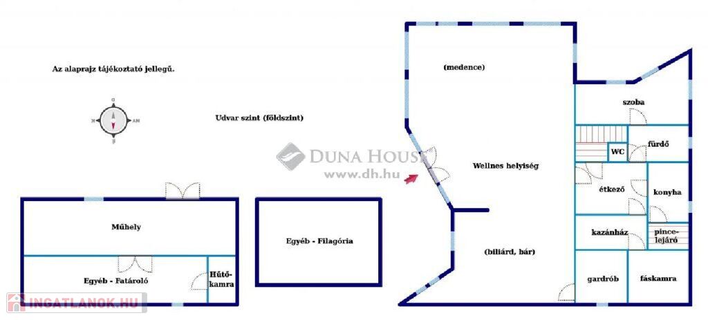 Ugyancsak ezen a szinten került kialakításra a több, mint 100 nm-es wellness helyiség 6x3 nm-es beltéri fűthető medencével (ami betonozott és csempézett), biliárd teremmel, bársarokkal, társalgóval.