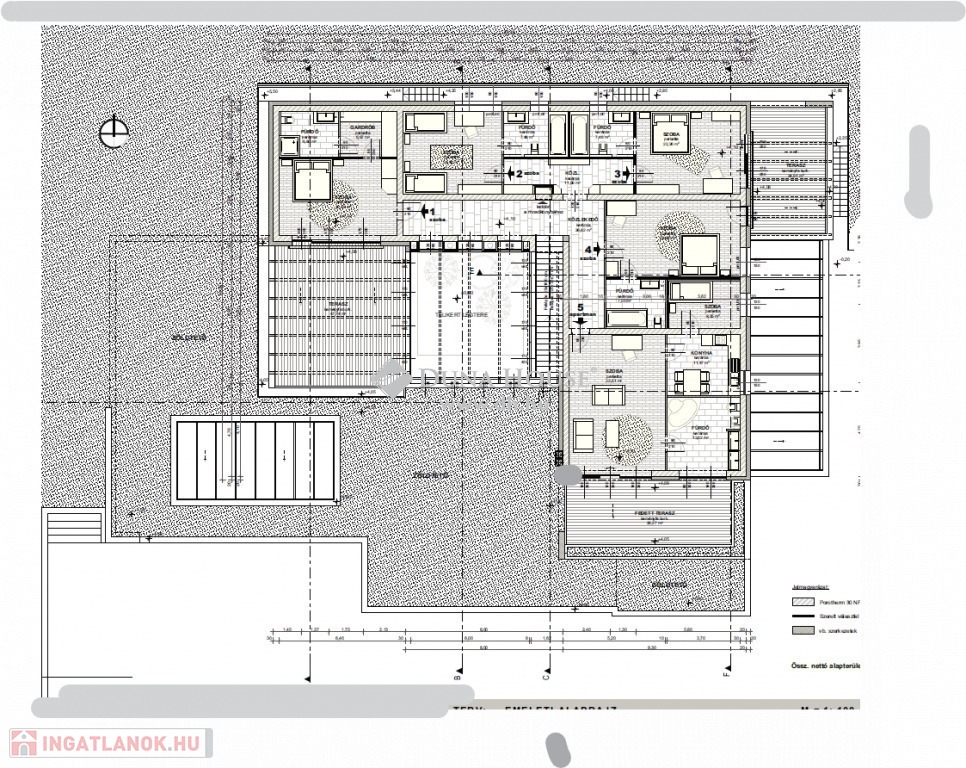 A főépület kivitelezése már 55%-os készültségi szinten áll, és a tervek szerint a wellness részleg, valamint a vendégszobák is ideálisan tájoltak lesznek a napfény és a lenyűgöző kilátás maximális kihasználására. Az építkezés során kiemelt figyelmet fordítottunk a környezetbe való tökéletes illeszkedésre: az épület tömegét alacsonyan tartottuk, a tetőteraszokat növényekkel árnyékolt pergolák díszítik, melyek között szőlőt is fogunk futtatni.
