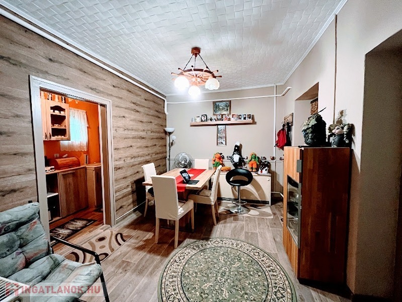 A telek két utcáról is megközelíthető, a háznak is két bejárata van. A ház két éve felújításon esett át, így az új tulajdonosnak nem lesz sok dolga vele. A házban a nagy nappali mellett két hálószoba, valamint egy étkező biztosítja, hogy akár egy nagyobb család számára is élhető terek álljanak rendelkezésre. A ház fűtésére 3 különböző lehetőség is adott, így a rezsi mindig alacsonyan tartható. - elektromos, hőtárolós kályha - gázfűtés, mely kényelmes, távirányítóval vezérelhető, beállítható - vegyes tüzelésű kazán A sík telek 519 nm. Az egyik utcáról nyílik a már említett kisház és az autós beálló, mely a garázshoz tart. Rendelkezésre áll még egy garázs. A másik utcáról egy gyalogos kapu nyílik. A telken fúrt kút található, amellyel a nyári locsolás, medence feltöltése megoldható.