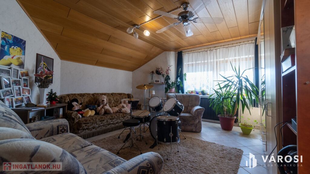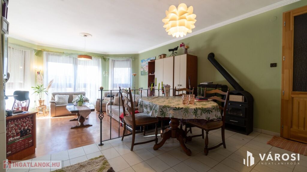 A 9 szoba és 2 nappali mellett 5 fürdőszoba található az épületben, így kényelmesen elfér itt egy nagyobb család is. Az ingatlan egy csendes utcában helyezkedik el, így a nyugodt pihenés biztosított. A ház felszerelt, jó közlekedéssel rendelkezik. A nyílászárók egy része műanyagra cserélt, a másik része fa, mindegyik redőnnyel felszerelt. A fűtés gáz cirkó kazánnal történik, radiátoros hőleadással. A kellemes hőérzetet a meleg nyári napokon 2 darab klíma biztosítja.