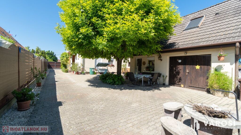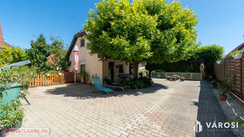A kert parkosított és gondozott, ahol gondtalanul élvezhetjük kellemes nyári estéket. A kertben rendelkezésre áll fúrt kút is az öntözéshez. Az udvarban több autó számára térkövezett beálló van biztosítva.
