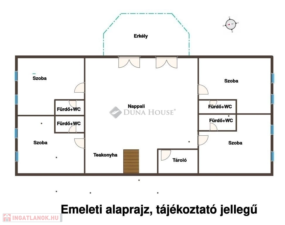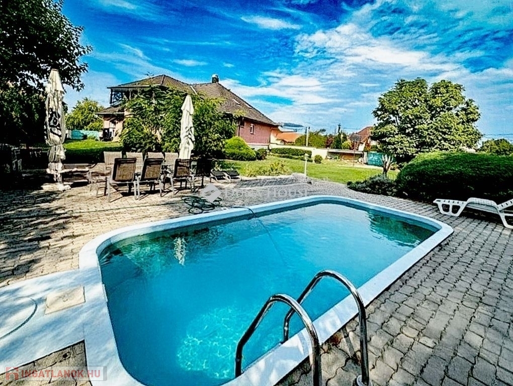 Az épület az 1990-es években épült, cseréptetős téglaépítésű 10 cm-es szigetelésű, korszerű műanyag nyílászárókat és napelemrendszert is tartalmazó, akár többgeneráció együttélésére is alkalmas többszintes családi ház. A garázsban egy működési engedéllyel rendelkező mini sütőüzemet is kialakítottak. A családi házban egy hatalmas, világos, süllyesztett nappali található, amely közvetlen kapcsolattal rendelkezik, saját terasszal és a gondozott kerttel. Ezen kívül a földszinten megtalálható egy tágas, nagy kiadóablakos étkező és konyha, négy hálószoba, egy gardróbszoba, valamint két fürdőszoba, amelyek közül az egyik zuhanyzós WC-vel, a másik pedig kádas és zuhanyzós, külön WC-vel van felszerelve. Az emeleti részen négy db egyforma apartman áll rendelkezésre, mindegyik saját fürdőszobával, WC-vel, külön közös nappalival, konyhasarokkal és egy nagy erkéllyel. Az emelet teljes berendezése is a vásárlás részét képezi, így az ingatlan azonnal kiadható vagy turisztikai célra is hasznosítható. A pinceszint tárolóként, pinceként funkcionál, de lehetőség van wellnessrészleg vagy további szobák kialakítására is.Amennyiben felkeltettem érdeklődését, úgy várom megtisztelő hívását.