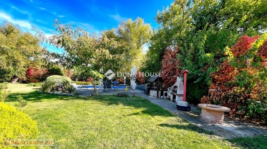 A két telek 2278 négyzetméteres, saroktelek, amely rengeteg lehetőséget rejt magában. A kertben megtalálható egy kerti tó, medence, kerti kiülő, gyerek játszótér, valamint parkolóhelyek a telken belül. A locsolás fúrt kútról történik, ezáltal a fenntartás költséghatékony. Műszaki szempontból a ház rendkívül jól felszerelt: kandalló, három db hűtő-fűtő klíma, gázkazán a radiátoros fűtésért, melegvíz-ellátás gáz- és villanykazánnal, valamint napelemek biztosítják az energiaellátást.