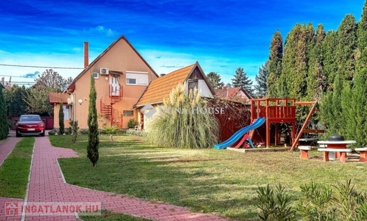 Megvételre kínálok egy teljesen felújított, téglaépítésű, cserépfedésű, három külön bejáratú lakrészt tartalmazó, - 133 nm-es, összesen 6 szobás + 1 félszobás - triplakomfortos családi házat, mediterrán hangulatú, igényesen kialakított kerttel, kiváló lokációban, Siófok közkedvelt részén, a Fokihegyen.A ház az 1970-es években épült, többször felújított, átalakított, tetőtér beépítéses, külső szigeteléssel ellátott, többgenerációs családi ház. Kiválóan alkalmas több generáció együttélésére, vagy befektetési célra is, mert a három külön bejáratú lakrésznek köszönhetően hosszútávon akár bérlők számára kiadható, de a nyári szezonban nyaraltatásra is használható a család ott lakása mellett is.Kiváló lokáció! Bevásárlási lehetőség gyalogosan 5-8 percre, az autóbusz megálló 3-5 percre, általános iskola 10-12 percre, vasútállomás 6-8 percre, a Balaton part 12-18 perces sétával elérhető. Napelemrendszerének köszönhetően a szaldós elszámolás okán szinte önfenntartó a villamosenergia felhasználása (3x20A).Az extra adottságai: Elektromos motorral működtetett kapubejáró, automata kerti öntözőrendszer, 2 autó számára is kényelmes, fedett beálló, fedett kerti kiülő a mediterrán hangulatot biztosító pálmafák és növények között.1. lakrész földszint: 56 nm: amerikai konyhás nappali étkezővel, két külön bejáratú hálószobával, fürdőszobával (kád, zuhanyzó, mosdó és WC). A nappaliban klíma található, a ház összes külső nyílászárója korszerű műanyag, az ablakokon szúnyogháló is van. A fűtést és a használati melegvíz ellátását gázkazán biztosítja, a nappaliban klíma is van.2. lakrész tetőtér: 56 nm. Az épületen kívüli csigalépcsőn elérhető, külön bejárattal rendelkezik, amely a ház K-i részénél található. Mind a három külön bejáratú hálószoba az előtér/konyha/étkezőből nyílik, valamint ugyancsak innen léphetünk be a fürdőszobába is. A fűtés elektromos panellel történik, valamint klíma is felszerelésre került.3. lakrész a földszinten: A házhoz szorosan hozzáépített, külön bejáratú épületben található, amelyben egy hálószoba, konyha/étkező, előtér és zuhanyzós fürdő található.A fűtés elektromos panellel biztosítható a melegvizet éjszakai árammal működtetett villanybojler biztosítja. Remélem felkeltettem érdeklődést, így kérem NE habozzon, hívjon bizalommal!