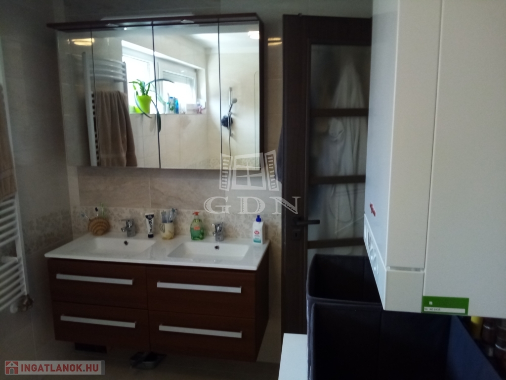 Siófok aranyparton, strandhoz közel eladó egy gyönyörű, két szintes, minőségi kivitelezésű, kertkapcsolatos, amerikai konyhás, nappali plusz három hálószobás, két fürdő - wc, kamra helyiségekből álló újszerű állapotú családi ház. A házat gondozott kert öleli ahol egy nagy és részben fedett pihenőterasz is helyet kapott. Itt található továbbá a zárt gépkocsibeálló és egy kerti tároló is. A ház földszintjén található a kertkapcsolatos nappali, nagyon nívós, gépesített konyha - étkező egység, egy vendég mosdó zuhannyal és egy kis tároló. Az emeleten kapott helyet a családi fürdő (wc - vel, fürdőkáddal), valamint három hálószoba amelyből kettő egy közös erkélyre nyílik. A ház klimatizált, akár teljes berendezéssel együtt birtokba vehető. Kiválóan alkalmas mind állandó otthonnak, mind nyaraltatásra, befektetésnek. További információkért hívjon!