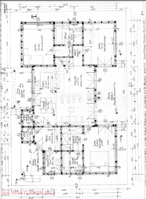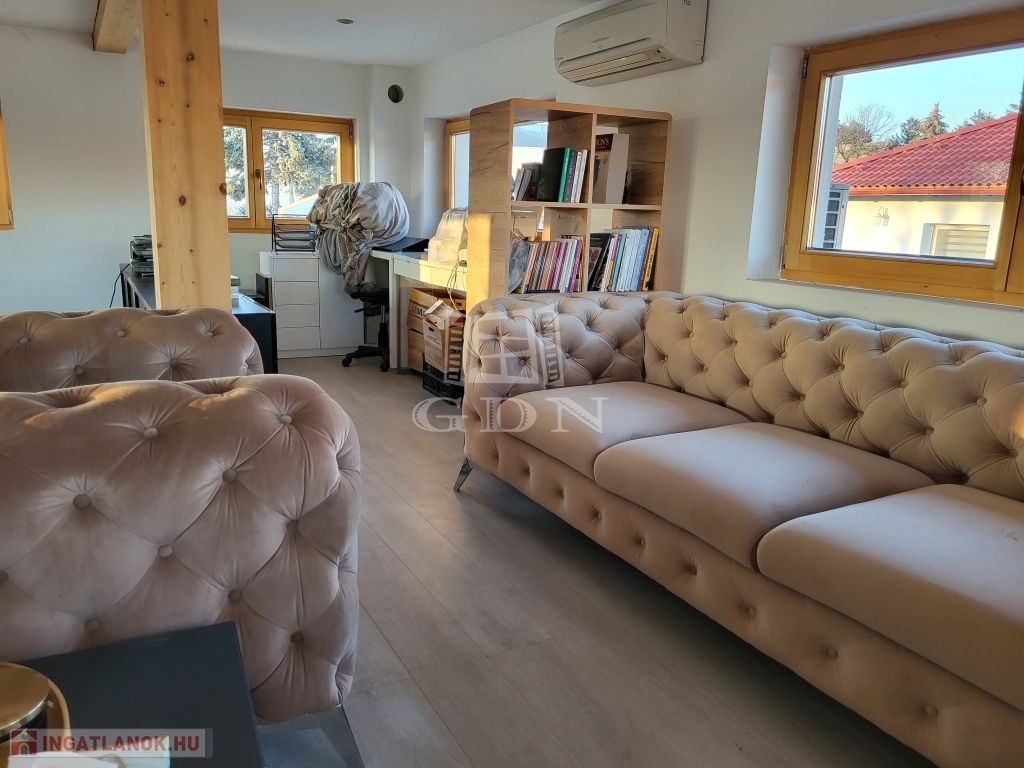 Az épület 12 helyiségből áll, mely tartalmaz egy nappali+amerikai konyha+étkező helyiséget és a felette kialakított galériát, 3 db 12-13 m2-es hálószobát, 2 fürdőszobát valamint előszobát, gardróbszobát, háztartási helyiséget, toalettet és egy kamrát. A házhoz 2 terasz helyiség is tartozik melyek 8,24 m2 valamint 16,98 m2 területűek