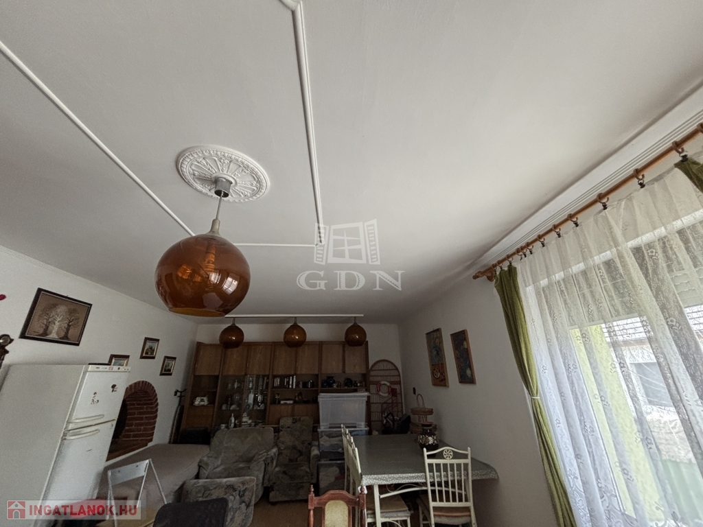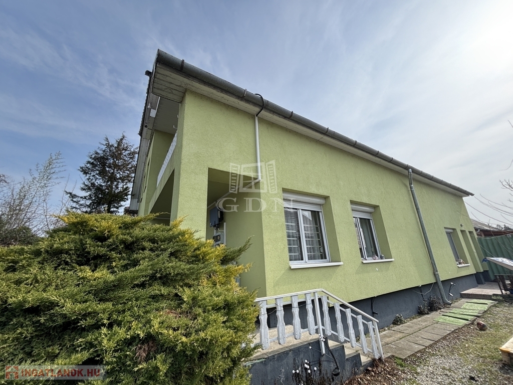 Előkertes, gáz-cirkó fűtéses, napelemes épület.
